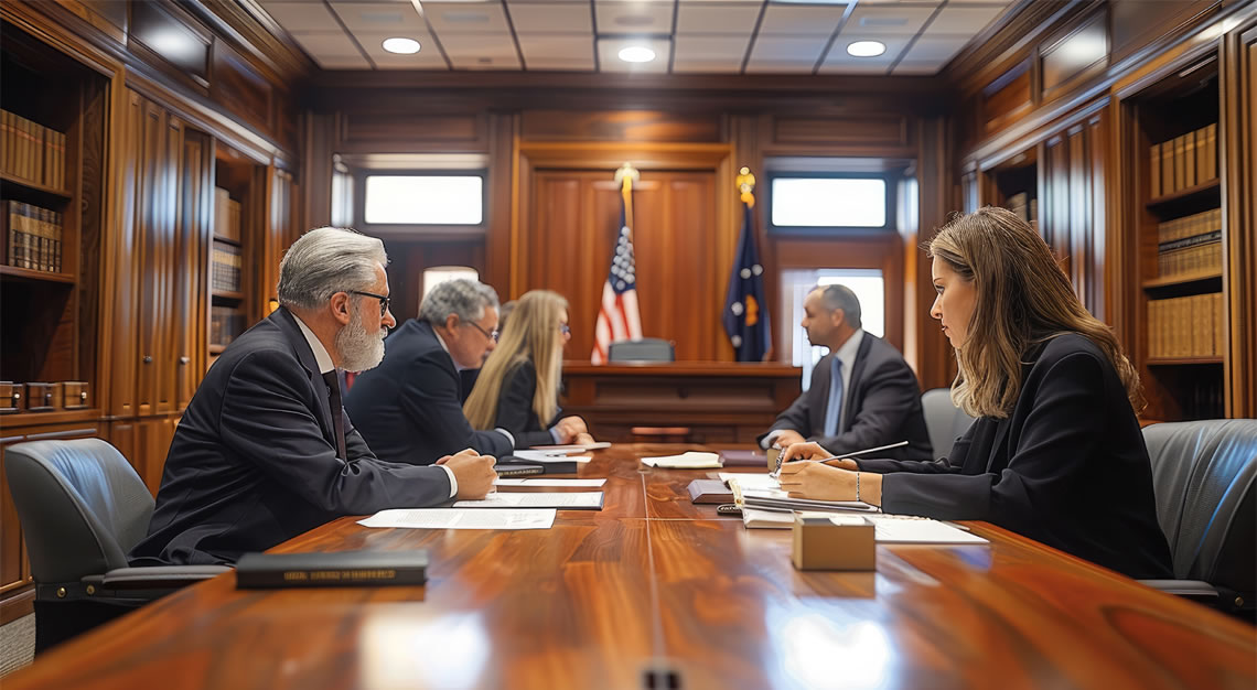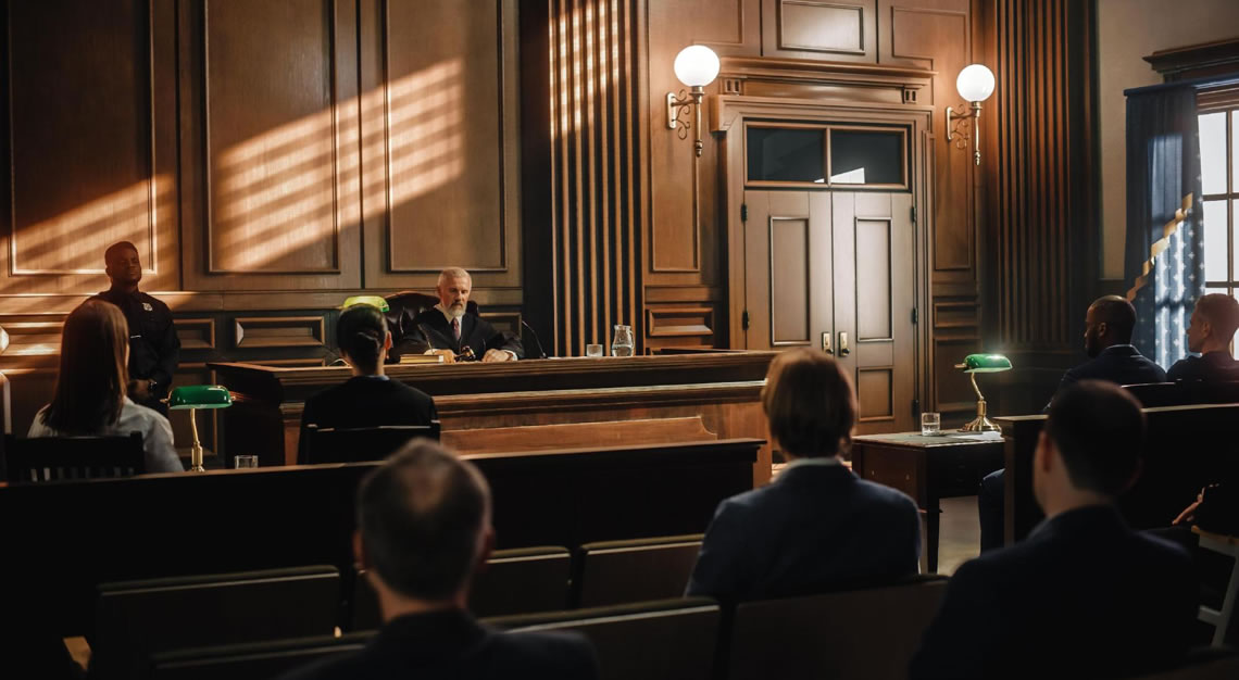 A courtroom with a judge presiding over a DUI case in Arizona. Lawyers present evidence and arguments as the case unfolds